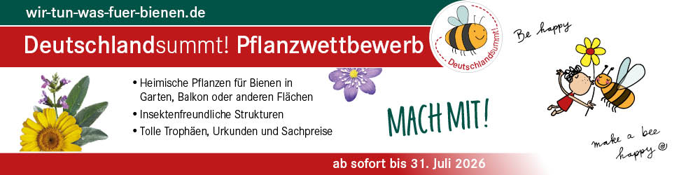 Seid dabei und lasst es summen! Der Deutschland summt!-Pflanzwettbewerb lädt Euch ein, naturnahe Oasen für Bienen und andere Tiere zu schaffen. Eine wunderbare Gelegenheit, Euer Engagement für die Natur sichtbar zu machen und gemeinsam mit anderen Eure Umgebung zum Blühen zu bringen.